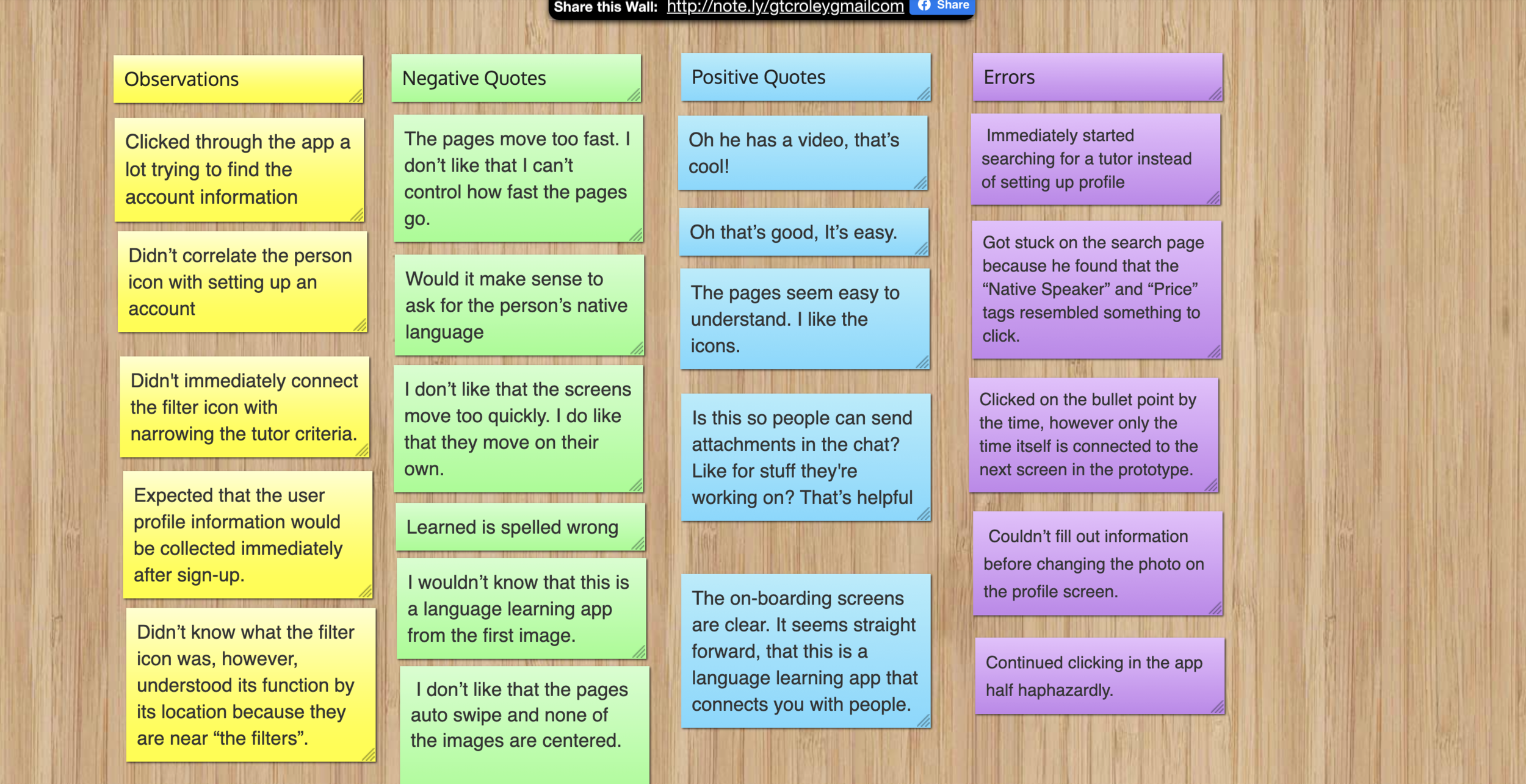 From my observations, I learned that users may need more prompts to set up their user profile. Also most participants didn't understand the filter icon, and had difficulty booking a tutor that met their criteria.